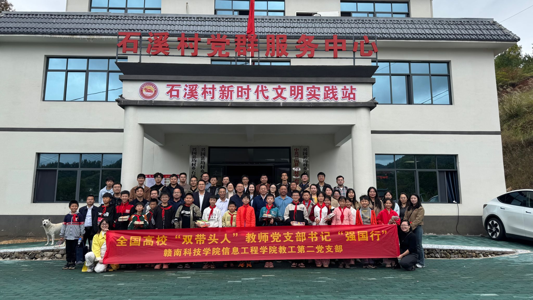 本网讯:为深入践行党建引领乡村振兴使命,扎实推进“强国行”主题活动,将高校的智力资源与人才优势精准对接乡村发展需求,11月9日,信息工程学院组织全体教师党员赴兴国县均村乡石溪村,开展“教育服务进乡村”活动,以实际行动为乡村教育振兴注入温暖与力量。