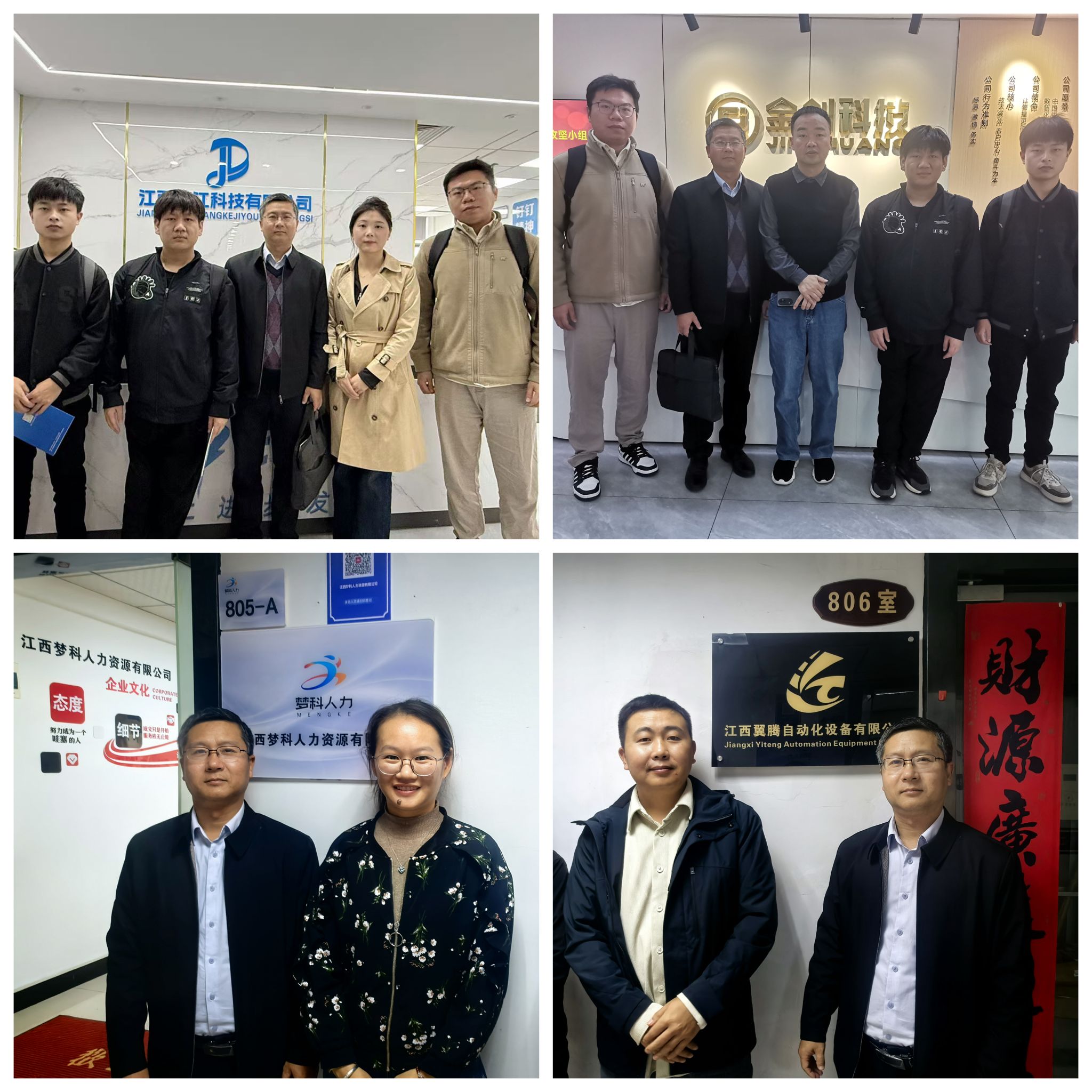 本网讯:11月14日-16日,信息工程学院党委委员、学工主任魏炳辉带队赴南昌、九江等地开展访企拓岗活动,深入了解企业需求,拓宽学生就业渠道。本次活动共访问了6家企业,分别是金创科技(江西)有限公司、江西丁江科技有限公司、厚邦(南昌)文化科技有限公司、南昌市有方水利水电咨询有限公司、江西翼腾自动化设备有限公司和江西梦科人力资源有限公司。