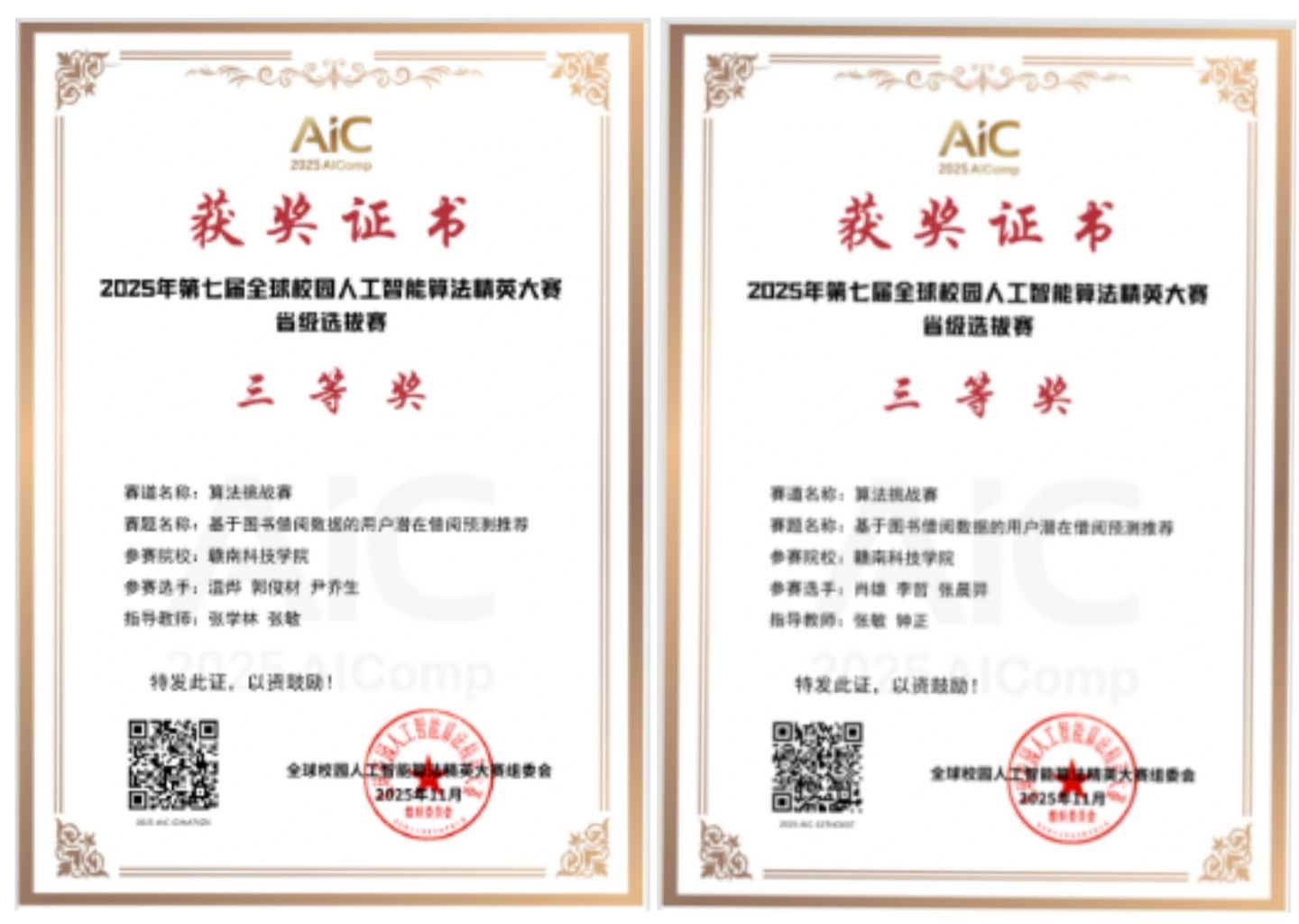 本网讯:近日,全球校园人工智能算法精英大赛算法挑战赛成绩揭晓,我校信息工程学院大数据、物联网、计算机专业的两支学生团队凭借“基于图书借阅数据的用户潜在借阅预测推荐”项目,斩获省级三等奖。