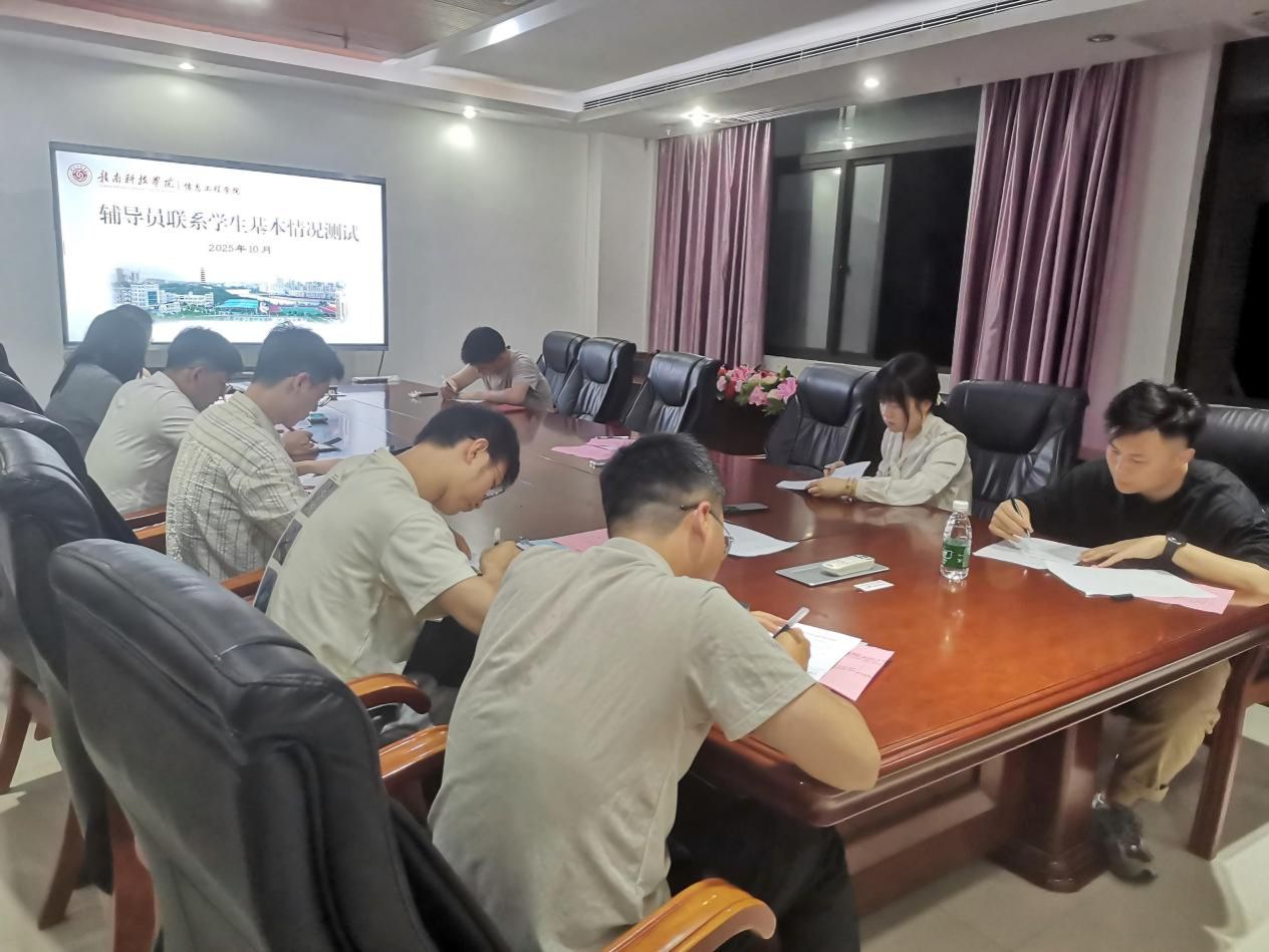 本网讯:为深入贯彻落实“以生为本”的工作理念,夯实辅导员工作基础,检验辅导员对学生的了解程度与日常工作的精细水平,10月21日,信息工程学院在稀土大楼C518会议室成功举办了2025-2026学年辅导员核心能力比赛之学生辨识比赛。本次考核由学院党委委员、学生工作办公室主任魏炳辉主持,学院全体专职辅导员参加。活动旨在通过“识人知事”这一基础环节,推动辅导员深入学生、熟悉学生,从而提升工作的针对性与实效性。