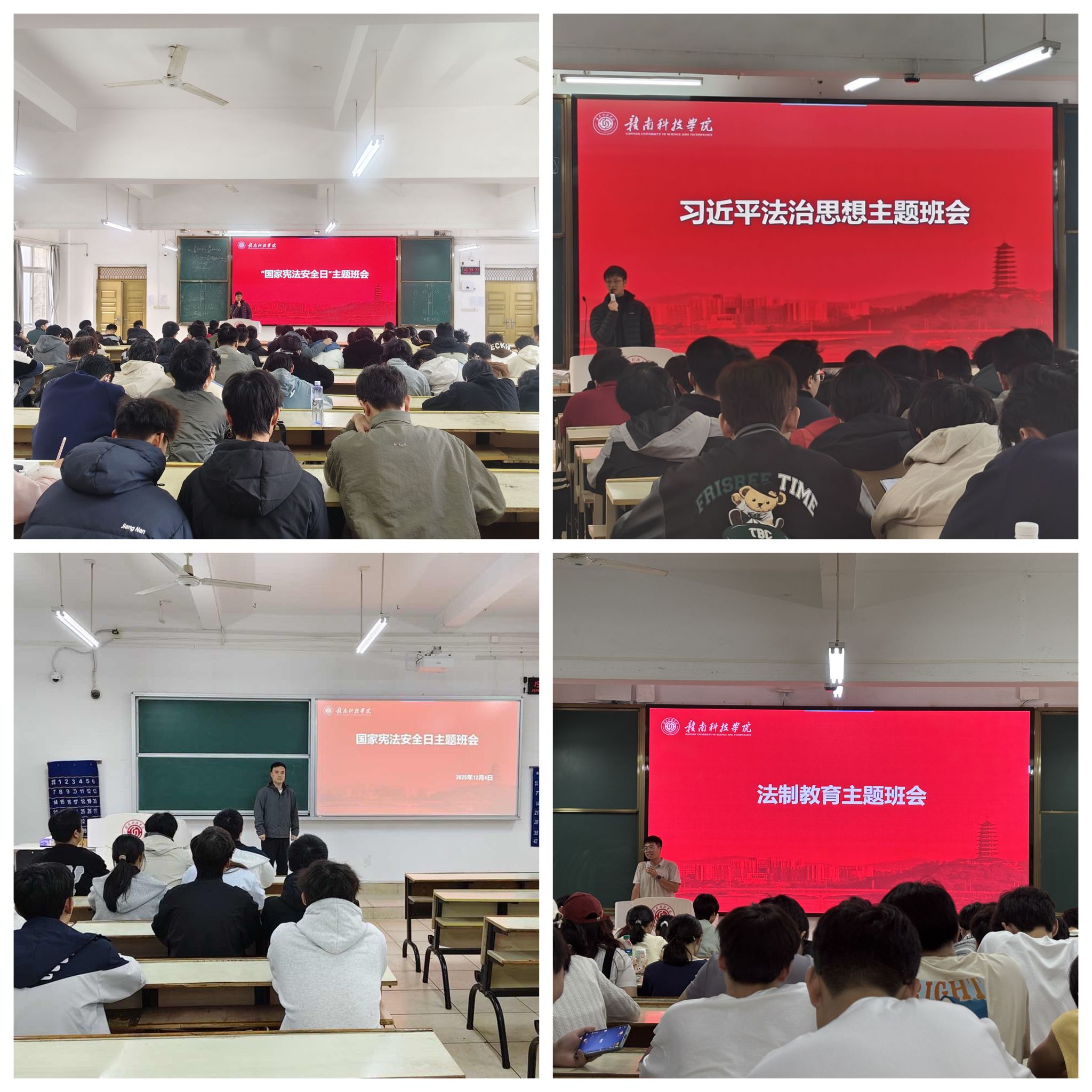 本网讯:为深入贯彻落实习近平总书记关于全面依法治国的重要论述,弘扬宪法精神,增强青年学生的法治观念与责任意识,在国家宪法日来临之际,12月11日,信息工程学院组织全院各班级召开“学习宣传贯彻习近平法治思想,推动宪法精神入脑入心”主题班会。通过理论宣讲、互动实践等形式,推动法治教育走深走实。