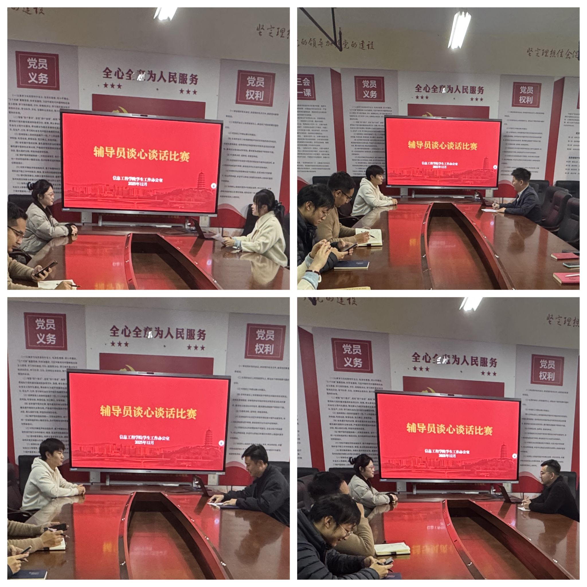 本网讯:为扎实推进辅导员队伍专业化、职业化建设,切实提升思政育人工作精准度与沟通实效,筑牢立德树人思想根基,11月18日,信息工程学院辅导员能力素质大赛之谈心谈话比赛在稀土大楼C509顺利举办。本次比赛创新邀请学院各年级学生代表扮演模拟对象,全程参与情境演绎,让比赛更具真实性、针对性。