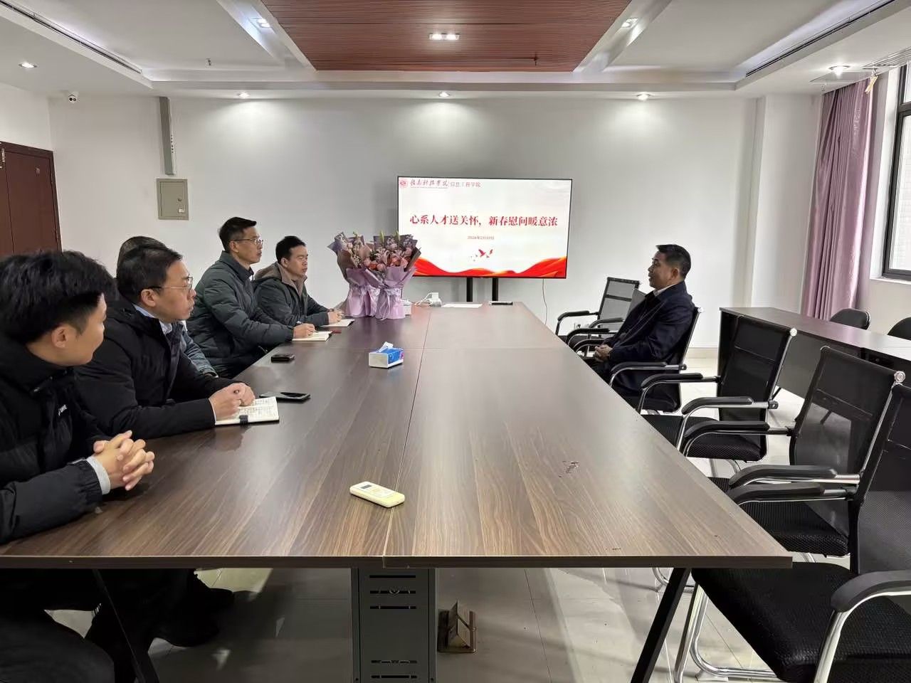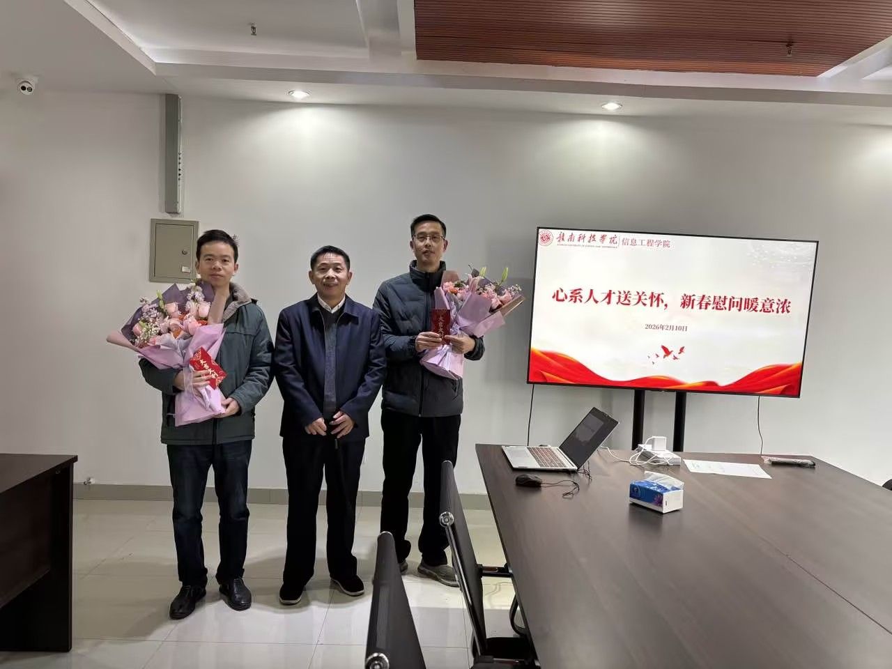本网讯:新春佳节将至,岁寒情深。为表达学校对高层次人才的关怀与重视,擘画学院新阶段发展蓝图,2月10日,学校党委委员、副校长何锦龙专程走访信息工程学院,亲切慰问学院高层次人才代表,并进行调研座谈。信息工程学院党政领导班子和高层次人才代表参加了活动。