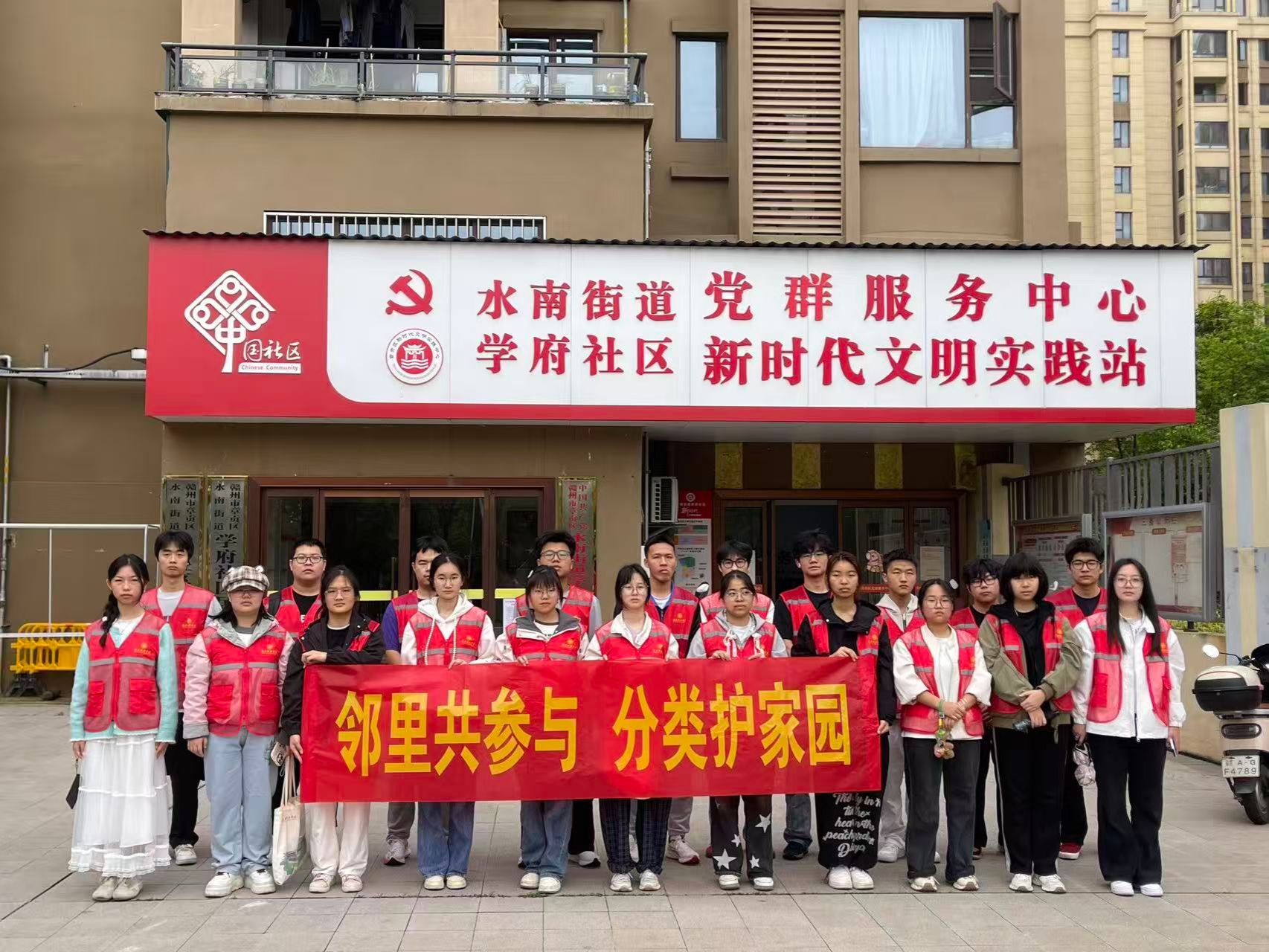 本网讯:为普及垃圾分类知识,增强社区居民尤其是青少年的环保意识,3月28日,信息工程学院组织20余名志愿者走进学府社区,开展了“邻里共参与,分类护家园”主题宣讲活动,旨在向社区居民普及垃圾分类知识,增强社区居民,特别是青少年的垃圾分类意识。