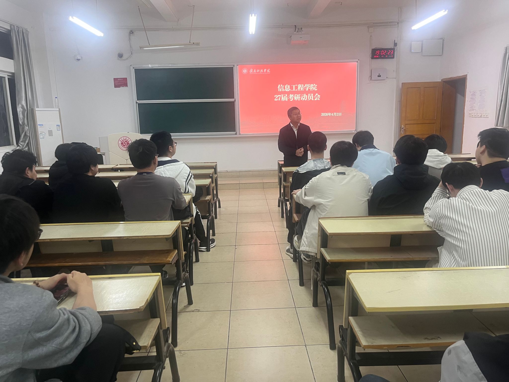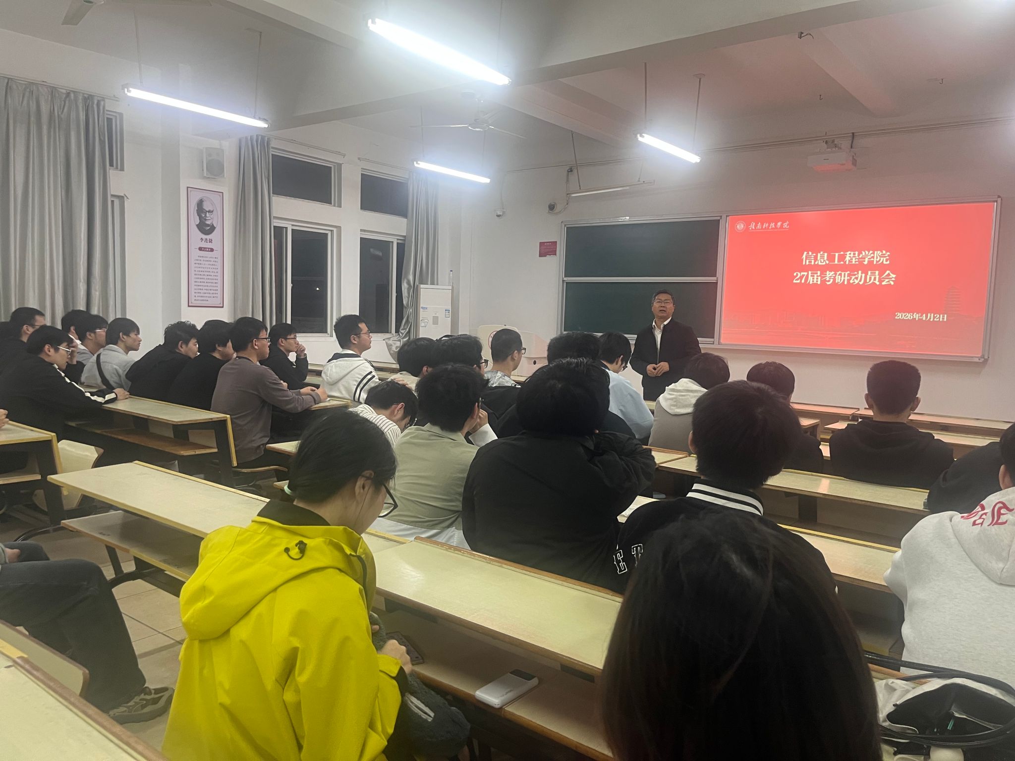 本网讯:为进一步加强学风建设,激发学生考研热情,明确未来发展方向,4月2日,信息工程学院在教学主楼Z113举办2027届考研动员会。本次会议由学院党委委员、学生工作办公室主任魏炳辉老师主讲,面向2023级相关专业学生开展动员与指导。