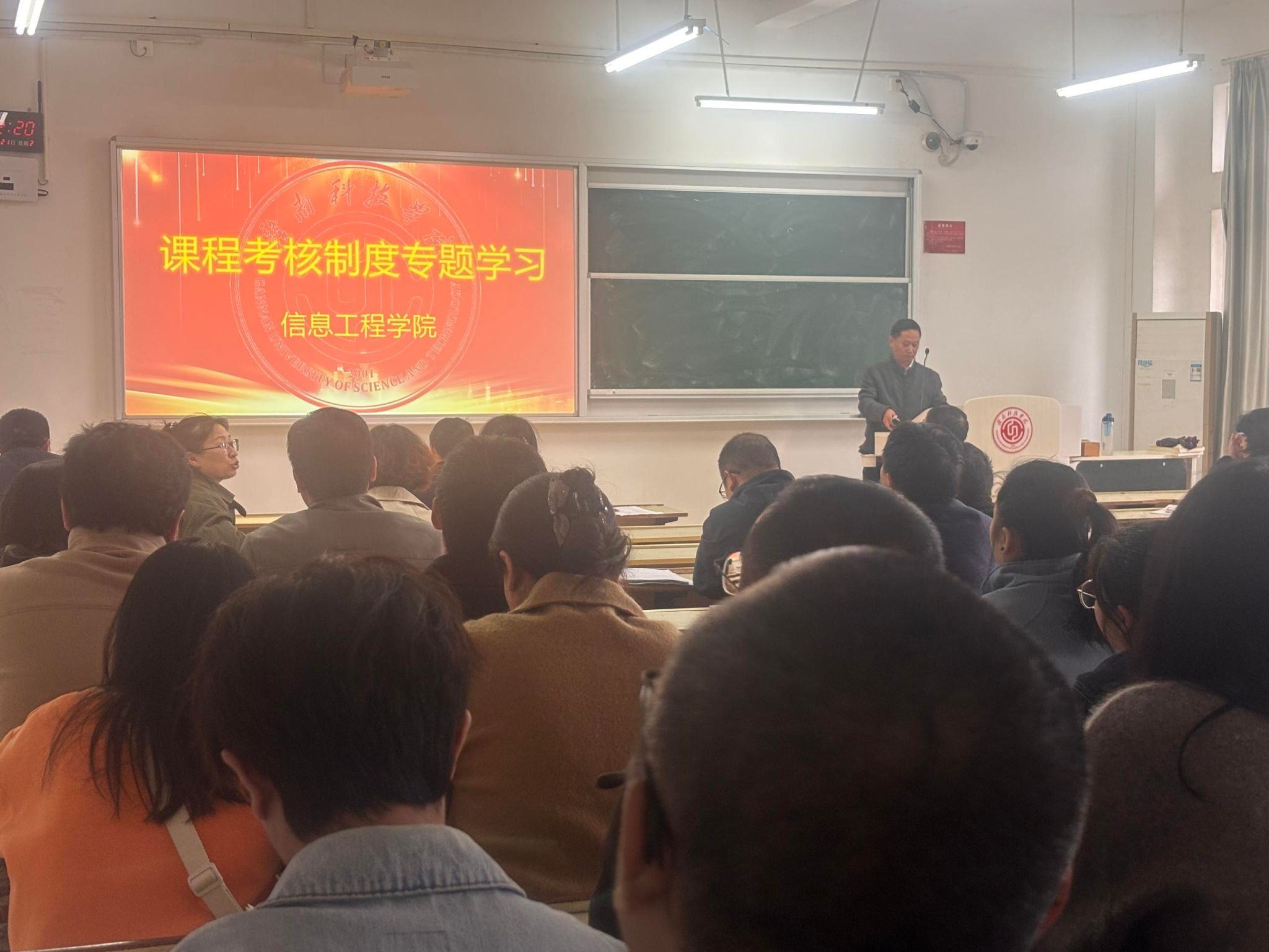 本网讯:10月21日下午,信息工程学院在崇善楼Z103教室召开课程考核制度专题学习会,学院全体教职工齐聚一堂,共同为提升教学质量、严肃考风考纪“充电赋能”,会议由专任教师张学林主持。