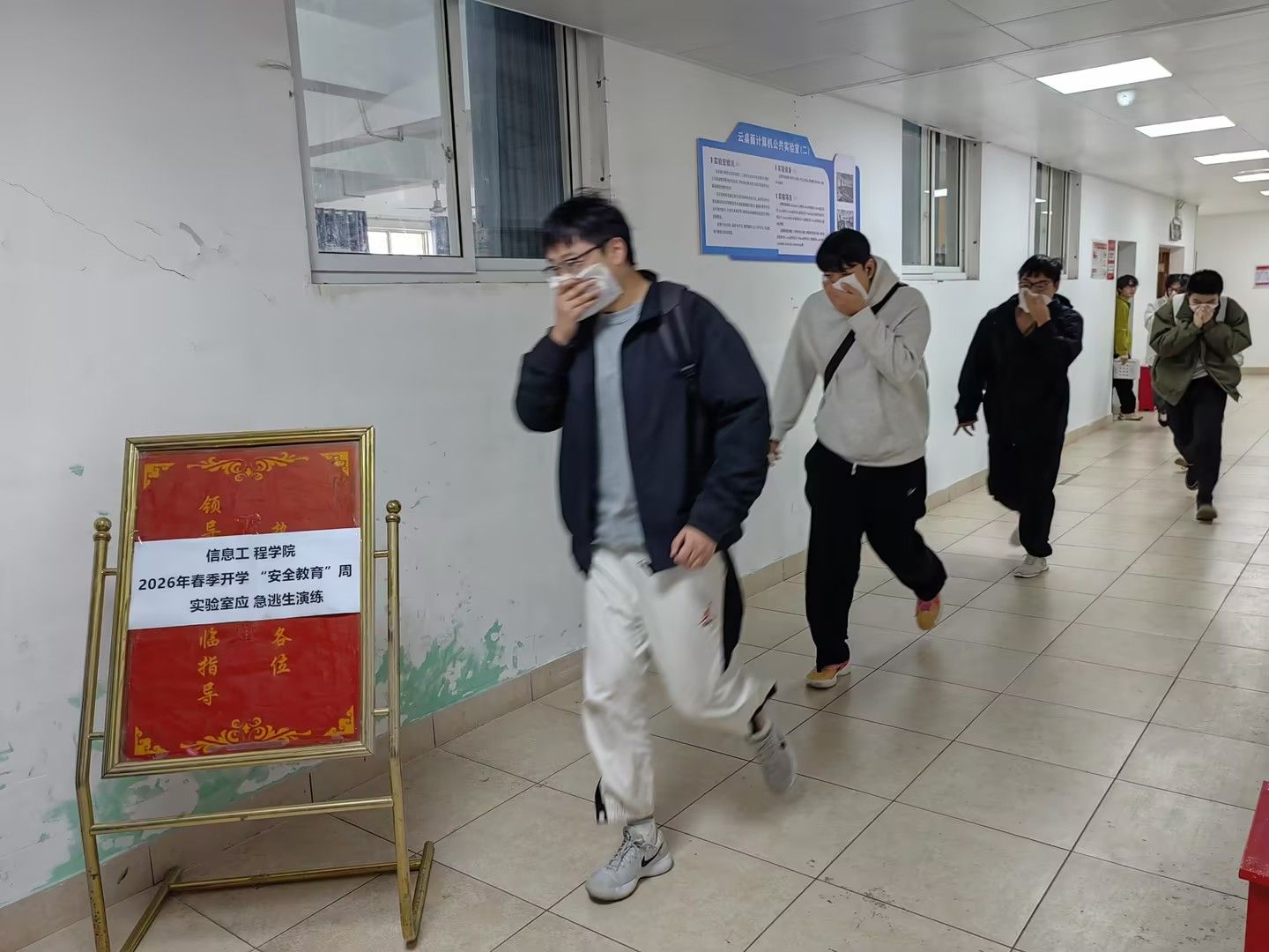 本网讯:为突出实验室安全重点,落实“人人讲安全、个个会应急”要求,筑牢科研安全防线,信息工程学院各专业实验室于2026年春季学期第一周启动安全教育周系列活动,通过实操实训与应急演练相结合的形式,筑牢校园安全防线。