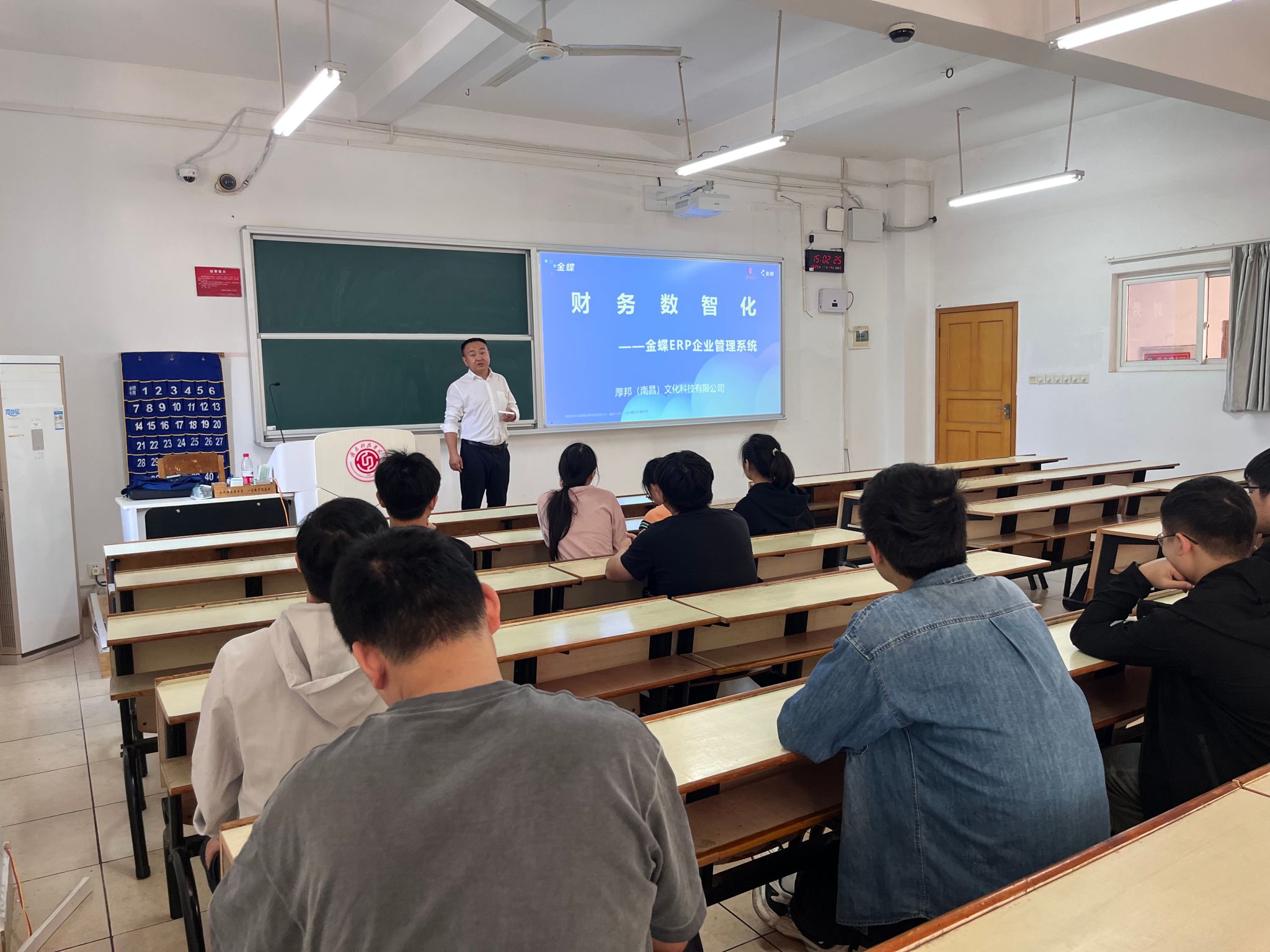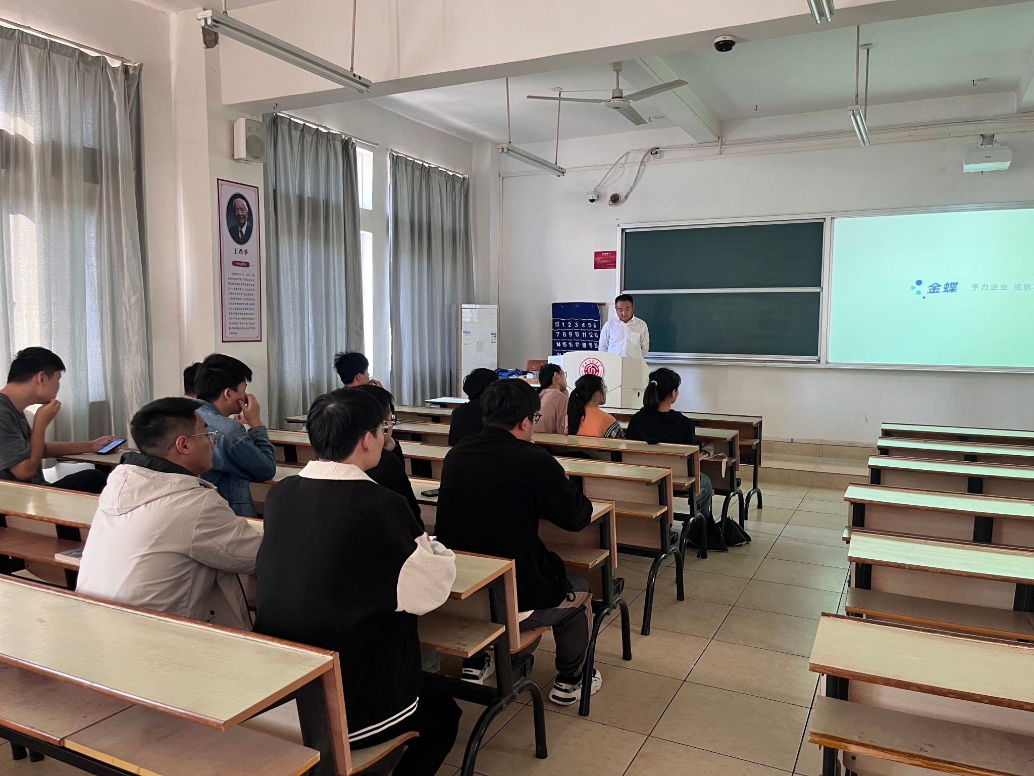 本网讯:11月14日,信息工程学院在崇善楼Z218举办“就在赣科”就业育人大讲坛第五十二期讲座,本次讲座邀请厚邦文化科技有限公司联合创始人赵明国作题“金蝶数智化管理软件ERP岗位规划”专题讲座,学院大数据专业22、23级学生到场聆听。