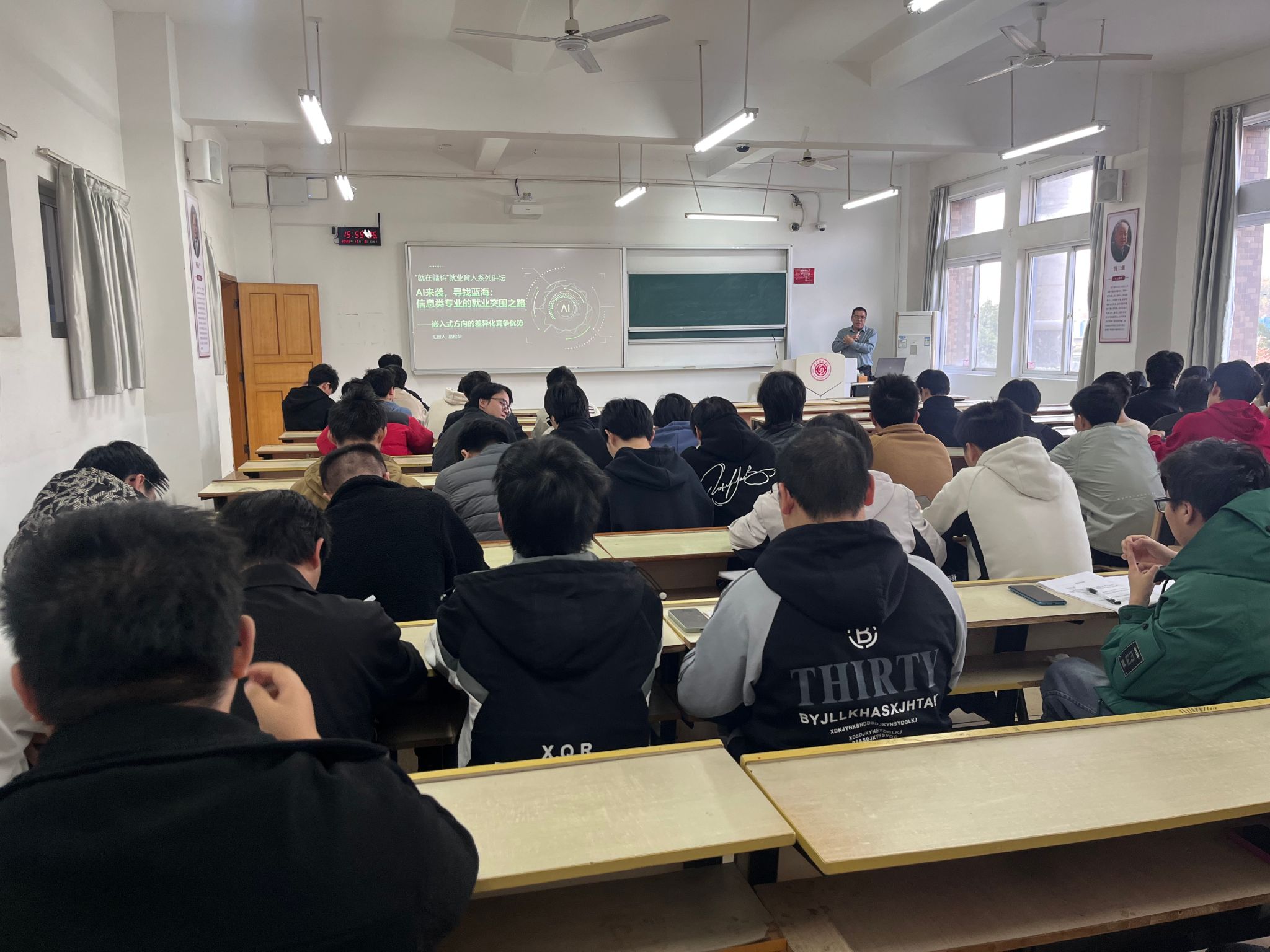 本网讯:为引导学生准确把握行业发展趋势,科学规划职业路径,提升就业竞争力,12月8日,信息工程学院在崇善楼Z102举办赣科第56期“面对现实,寻找蓝海:信息类专业同学的就业突围之路”讲座,本次讲座邀请深圳钜锋智联科技有限公司创始人易松华主讲主讲,学院100余名师生到场聆听。